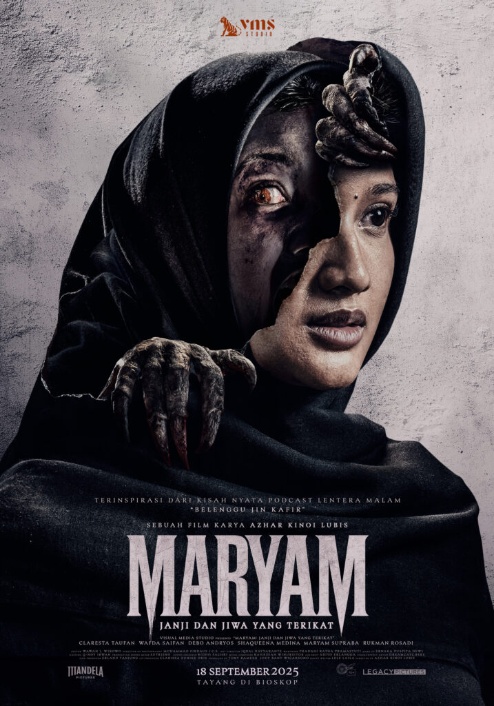 [BERDASARKAN KISAH NYATA] Maryam hidup dengan teror yang tak pernah berhenti sejak ia lahir. Ia menerima surat misterius yang selalu muncul di hadapannya, tak peduli dibuang atau dibakar. Ia tahu dirinya tak lagi sendiri. Sosok tak kasat mata mengikatnya dengan janji kelam, mengikuti setiap langkahnya, membisikkan kata-kata yang hanya bisa ia dengar. Semakin ia mencoba lepas, semakin kuat belenggu itu menjerat hingga Maryam tak tahu lagi, apakah ia hidup? atau sekedar menjadi milik sosok tersebut selamanya.
